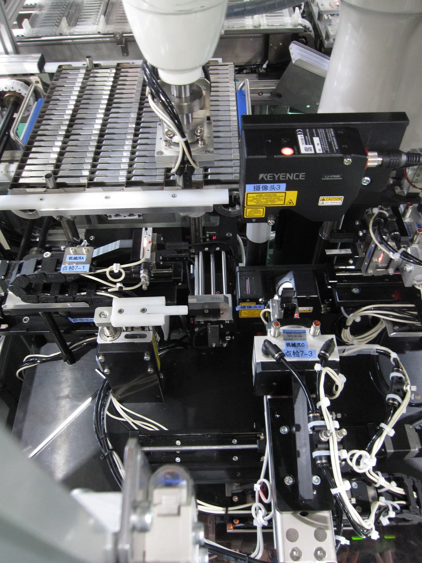 - 洗浄トレイで供給された部品を、自社製マシンビジョン搭載のスカラーロボットにより検査ステージに移載し、反転・移載・旋回機構により5面のキズ・打痕検査を実施